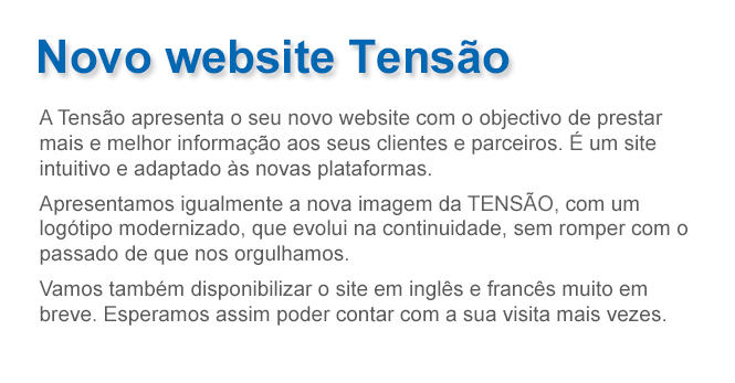 A Tensão apresenta o seu novo website com o objectivo de prestar mais e melhor informação aos seus clientes e parceiros. É um site intuitivo e adaptado às novas plataformas.